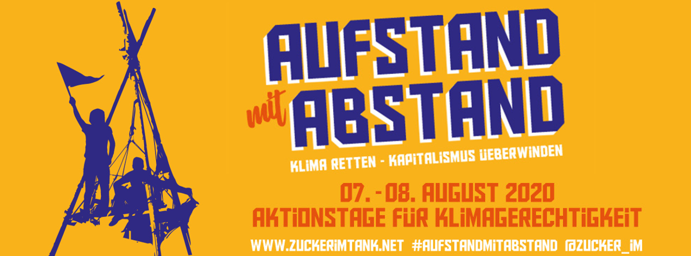 Wir laden euch ein, Teil der Aktionstage Aufstand mit Abstand am 07./08.08.2020 zu sein und mit dezentralen Aktionen auf die Themen Klimazerstörung, Klimagerechtigkeit und Kapitalismus aufmerksam zu machen.